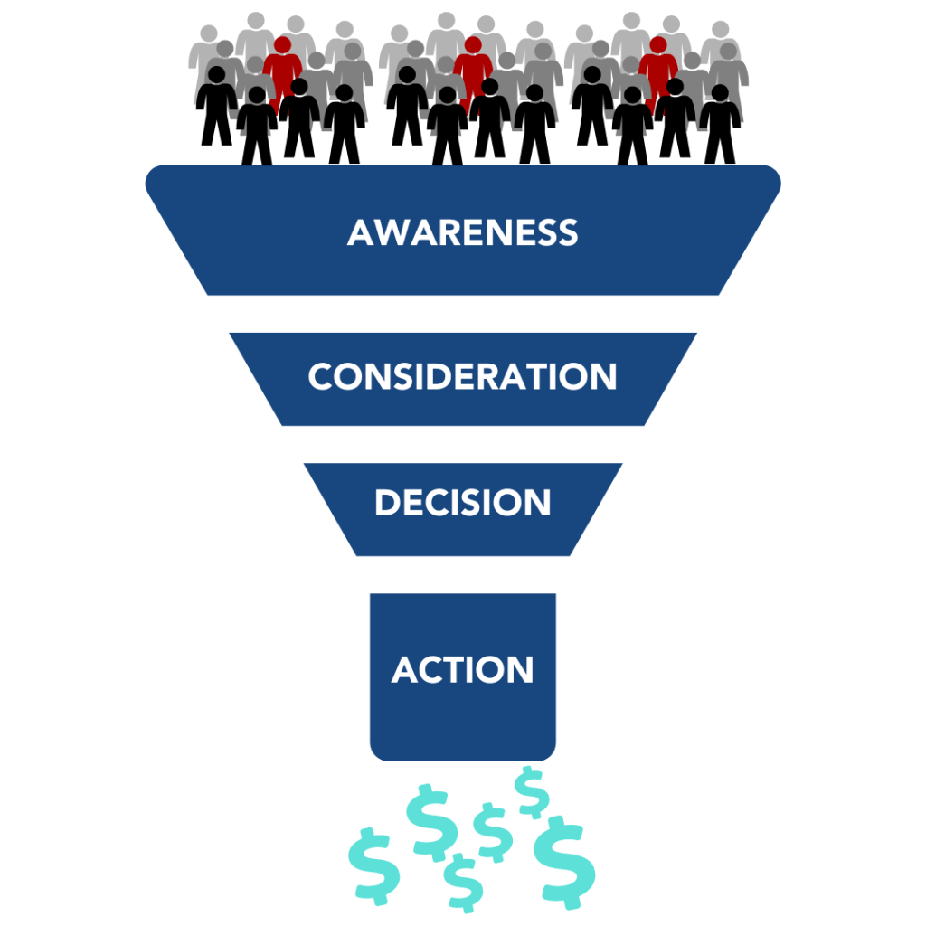 El funnel de ventas, o embudo de ventas, es una representación del proceso de compra dividido en etapas por las que pasa un cliente desde el conocimiento hasta la compra final. Las etapas típicas del funnel de ventas son: